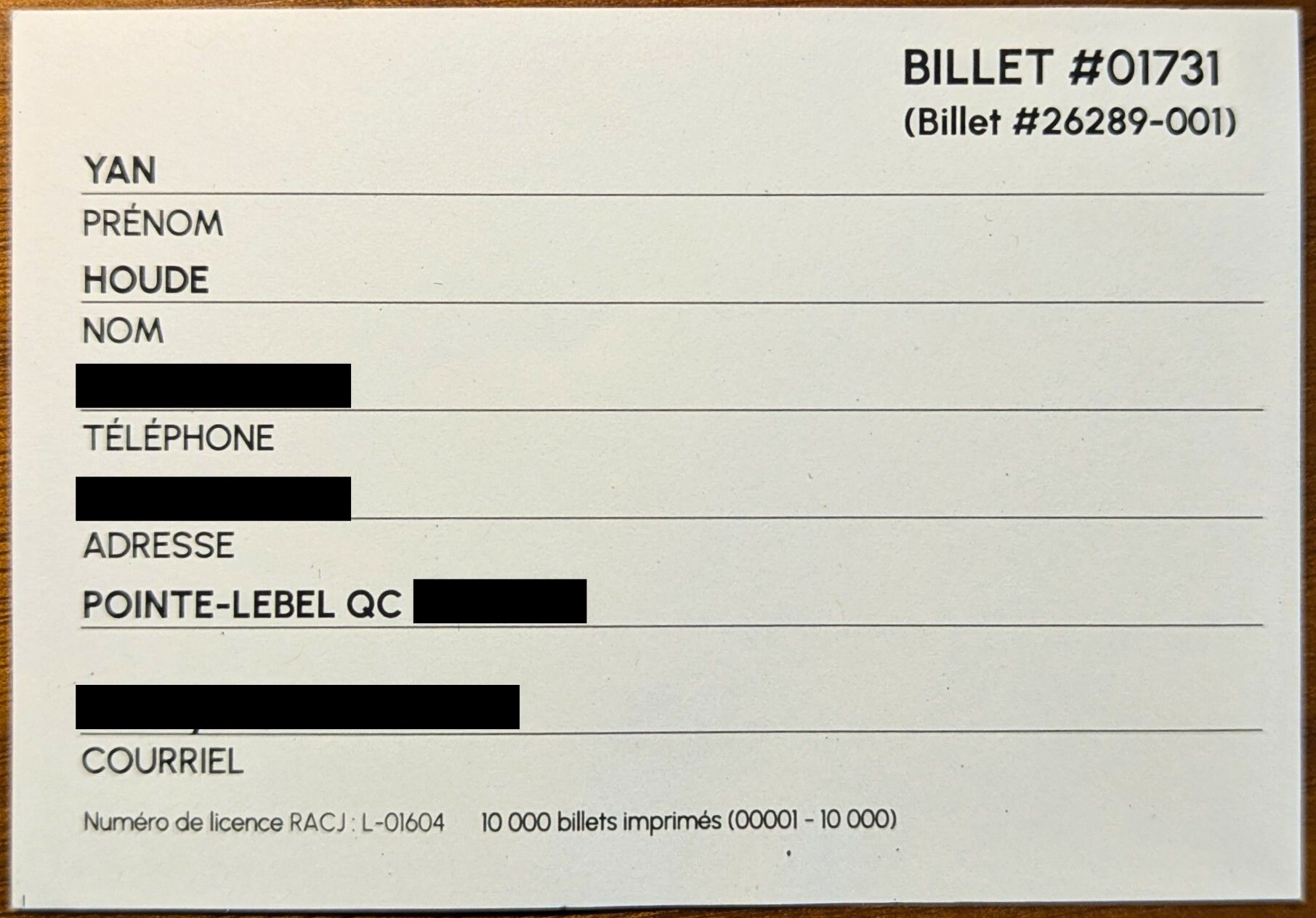 Le numéro du billet gagnant est : #01731
